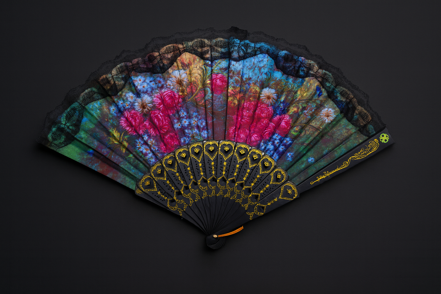 Meet Velvet Bloom, where classic beauty meets modern energy. Draped in deep colors and framed with fine lace, this fan celebrates contrast dark edges, radiant florals, and glowing gold accents. It’s made for those who love to stand out quietly, carrying sophistication with every move.